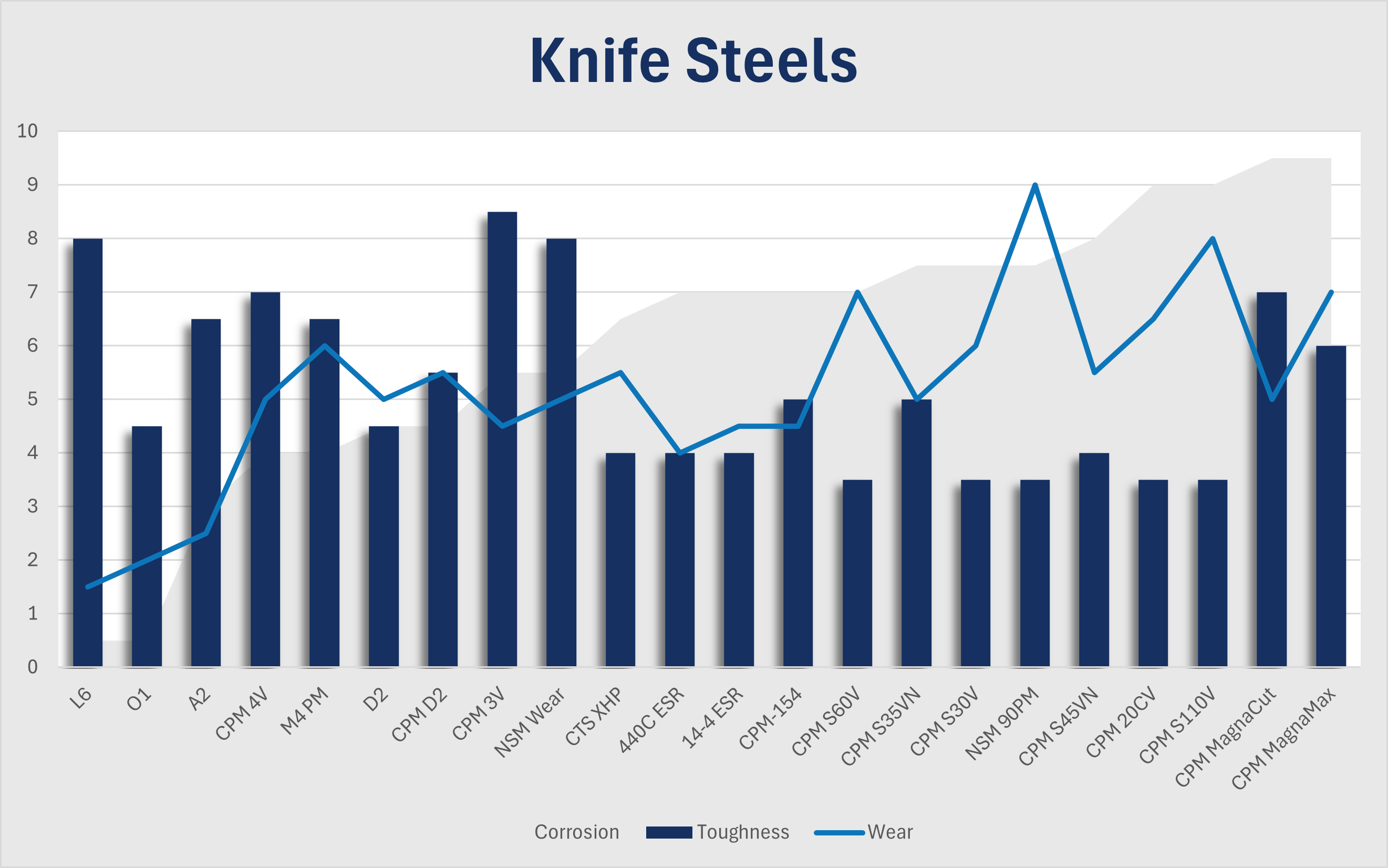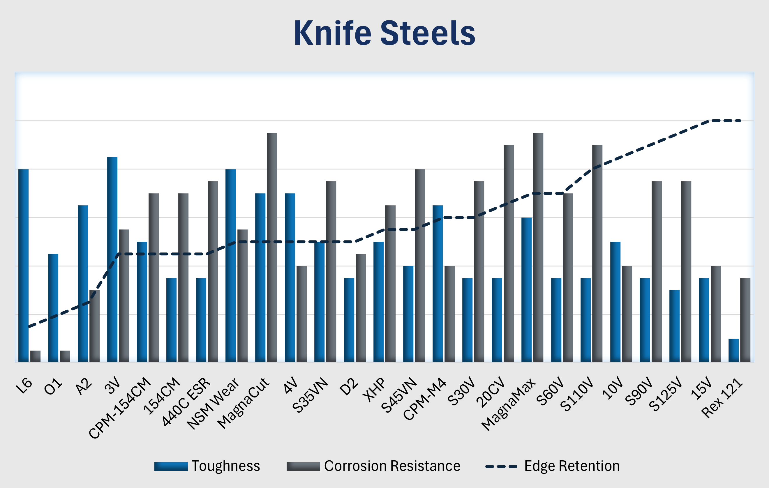154-CM – A performance upgrade to 440-C offering improved wear resistance and corrosion performance, making it a preferred choice for premium cutting tools.