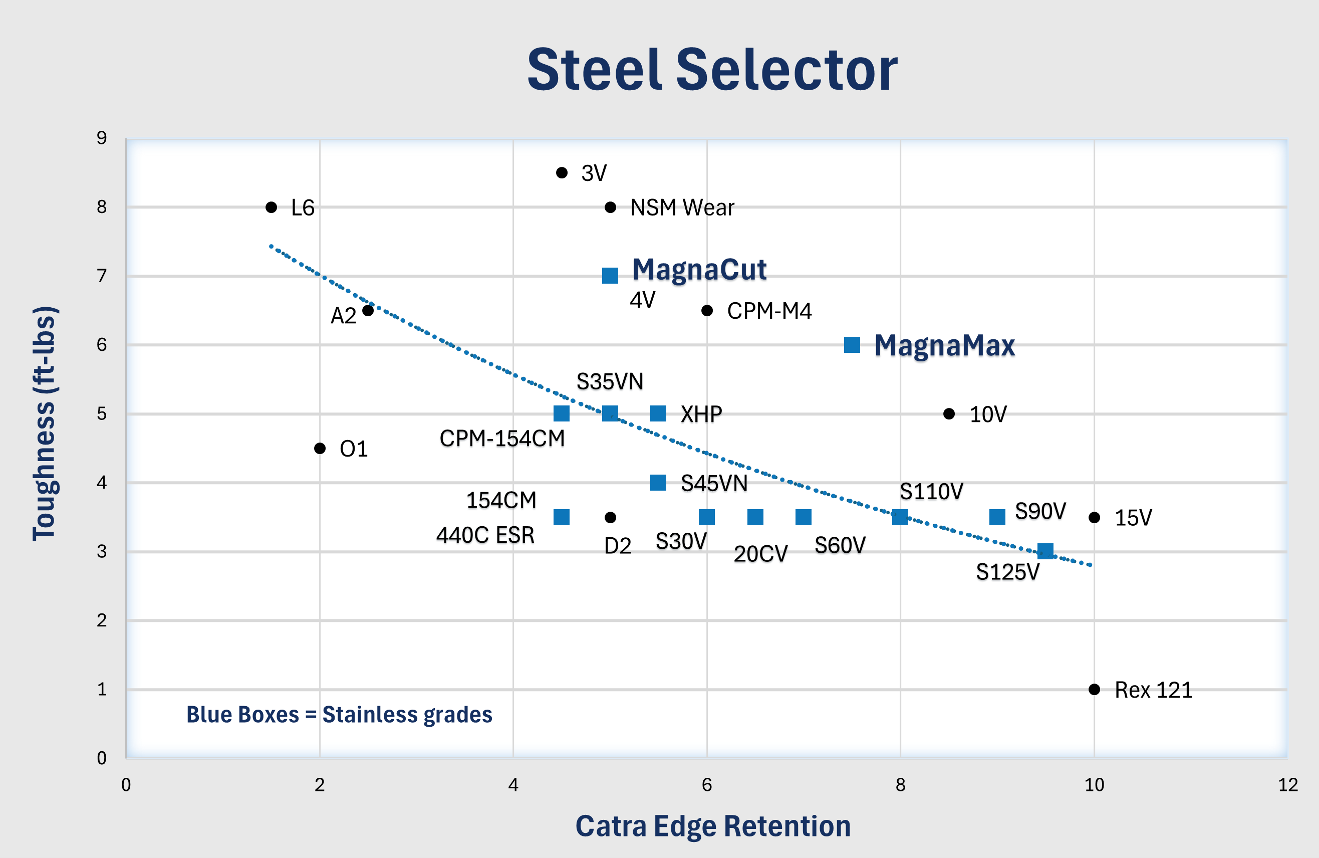 Our two newest CPM® offerings—S45VN and MagnaCut®—represent the latest advancements in cutlery steel technology.